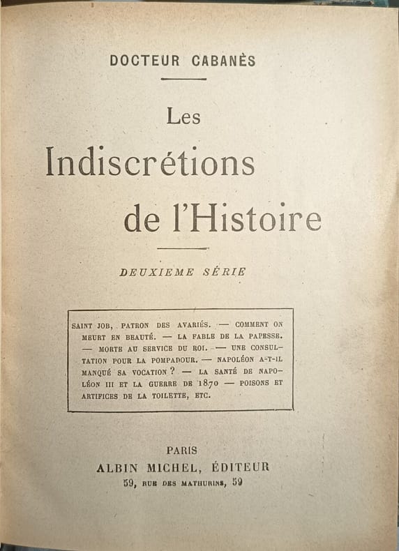 Albin Michel 1927 1927. Docteur Cabanès: Les Indiscrétions de l'Histoire 2ème série/ Albin Michel 1927