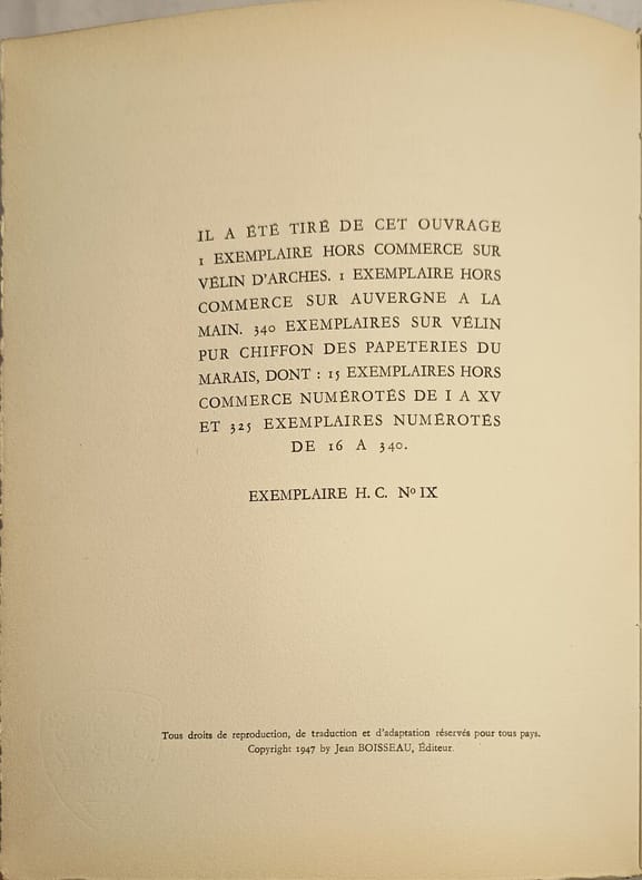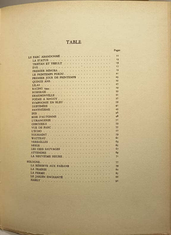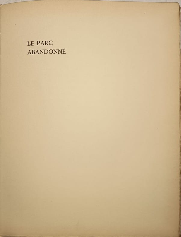 Jean boisseau 1947 93 pages in8. 1947. Broché couverture rempliée. 93 pages. Le Parc abandonné est un ouvrage d'André Florent publié en 1947 par l'éditeur Jean Boisseau. Il s'agit d'un livre broché de 93 pages tiré à 340 exemplaires sur vélin pur chiffon. L'œuvre contient plusieurs textes dont 'Le parc abandonné' par André Dumas et d'autres contributions d'auteurs comme Jean de Monthéas et Francisque Parn