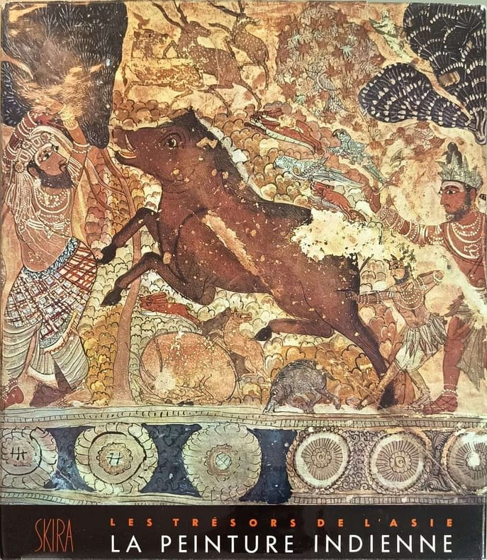 Genève, Éditions d'Art Albert Skira, 1963 ; in-4 carré, 216 pp., reliure d'éditeur pleine toile jaune d'or, sous jaquette illustrée et emboîtage. Collection “les Trésors de l'Asie” établie et dirigée par Albert Skira. Une histoire de la peinture indienne du IIème siècle au XIXème siècle. De la peinture murale à l'influence islamique jusqu'à l'arrivée au pouvoir des Moghols. L'influence de la Perse, de l'Islam se font aussi largement sentir. Nombreuses illustrations en couleurs collées. Bon état.