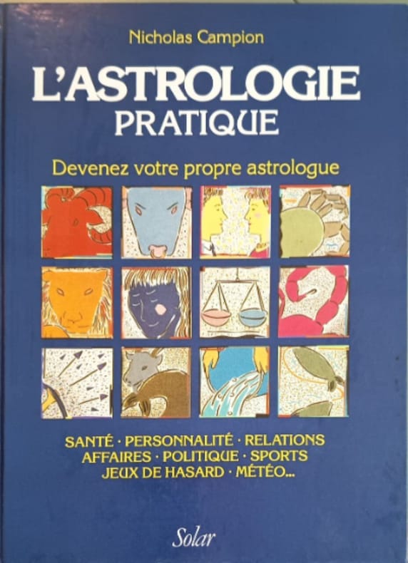Solar 1987 239 pages 533x102x724cm. 1987. Broché. 239 pages. Ce livre de Nicholas Campion publié aux éditions Solar en 1987/1988 propose une approche pratique de l'astrologie. Il guide le lecteur à travers les bases de cette discipline l'interprétation des thèmes astraux et la préparation de prédictions avec pour objectif de lui permettre de devenir son propre astrologue et d'appliquer ces principes dans sa vie quotidienne
