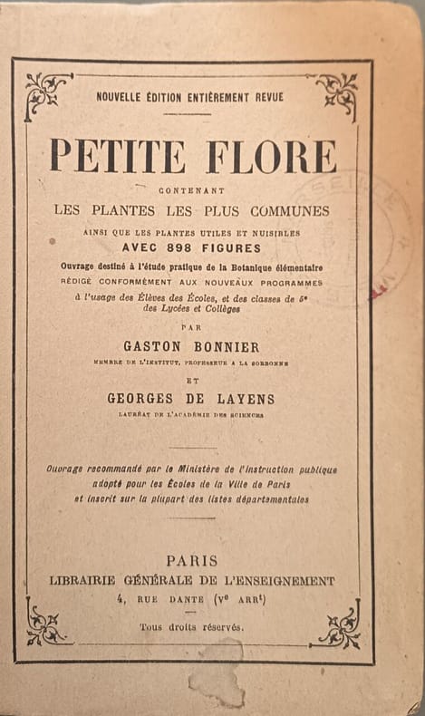 Librairie Générale de l'Enseignement 1949 143 pages in8. 1949. Reliure editeur cartonnée dos toilé. 143 pages. Petite flore est un manuel pratique de botanique élémentaire destiné aux élèves des écoles et collèges contenant 898 figures dessinées d'après nature pour reconnaître les plantes les plus communes ainsi que les plantes utiles et nuisibles. L'ouvrage est conforme aux programmes scolaires de l'époque et sert d'outil pédagogique pour l'étude pratique de la botanique