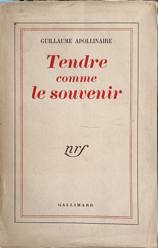 APOLLINAIRE (Guillaume).Tendre comme le souvenir.Gallimard, Paris, 28 avril 1952. In-8°, broché, 352 pp.,présenté par Marcel ADEMA et préfacé par la correspondante, enrichi de quelques documents hors-texte.Un des 27 exemplaires numérotés sur madagascar, dont vingt numérotés de 1 à 20 & 7 (dont celui-ci, hors commerce marqué C, second papier après 2 exemplaires sur japon impérial.Agréable édition originale posthume de ce recueil de lettres envoyées du 16 avril 1915 au 26 août 1916 par Guillaume Apollinaire à sa fiancée Madeleine Pagès