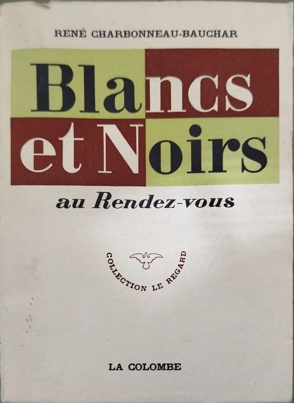 LA COLOMBE 1956 155 pages in8. 1956. broché. 155 pages. Essai de René Charbonneau-Bauchar publié en 1956 par les Éditions La Colombe abordant les relations entre Blancs et Noirs avec des chapitres traitant notamment de l'apartheid et de la compréhension mutuelle entre les communautés