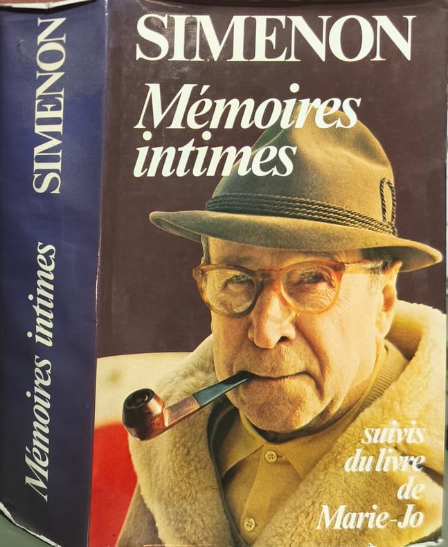 La sortie des Mémoires intimes a été considérée comme l’événement de la rentrée littéraire 1981 : « Le livre a un parfum de scandale, et cela à trois égards : primo, il y est question de la sexualité de cet homme mondialement célèbre pour avoir déclaré, quatre ans plus tôt, lors d’un entretien avec Fellini au sujet de son Casanova, avoir fait l’amour avec 10 000 femmes ; secundo, certaines pages n’allaient pas manquer de faire réagir son ex-seconde épouse, Denyse Ouimet, qui obtiendra en effet, dès le 9 novembre, la suppression de plusieurs passages ; tertio, il y est question de l’événement le plus douloureux qui puisse bouleverser la vie d’un être humain : le suicide de son enfant, en l’occurrence de Marie-Jo Simenon, qui s’était donné la mort le 19 mai 1978, à l’âge de vingt-cinq ans. Sexualité, guerre des sexes et mort dans l’autobiographie d’un écrivain mondialement célèbre et bénéficiant d’un véritable battage médiatique ; les Mémoires intimes ne pouvaient pas passer inaperçus. » (Laurent Demoulin, « Simenon apostrophé », Textyles, 63 | 2022, 87-97). C’est en 1979, à l’issue de sa 21e et dernière dictée, que Simenon décide de se lancer dans l’écriture de ses Mémoires intimes. Ce sera la plus volumineuse de ses œuvres. Abandonnant sa machine et son magnétophone, il noircit à la main, entre février et novembre 1980, chaque jour de quatorze à vingt heures, 686 feuillets manuscrits d’une écriture très serrée. Dans le même temps, sous le pseudonyme d’Odile Dessane, Denyse Simenon-Ouimet, dont il vit séparé, publie Le Phallus d’or, où « toute ressemblance avec un ou des personnages ayant existé... [etc.] » – indique l’avertissement. Comme dans Un oiseau pour le chat, publié en 1978, elle se défend d’avoir voulu régler ses comptes. « J’ai essayé simplement de donner à mon mari mythique une dimension humaine et lui rendre une chaleur qu’il est en train de perdre. » Elle y raconte les passions dévorantes du père de Maigret, sa tyrannie, et son semblant d’affection envers celle qui garda toujours le nom de Simenon : « [Il] ne veut pas divorcer. Et il me verse une pension équivalant au millième de ses revenus ». Mère de ses trois enfants (John, Marie-Jo et Pierre), elle refuse certaines lignes des Mémoires intimes, notamment celles où le romancier l’accuse d’avoir atteint à jamais le psychisme de Marie-Jo, et porte l’affaire devant les tribunaux. Ce tirage princeps d’octobre ne fut mis en vente qu’une petite semaine : le 9 novembre 1981, le tribunal de grande instance de Paris ordonne le retrait des ouvrages et la suppression de plusieurs passages (31 lignes en tout, dont 25 concer- nant Marie-Jo) pour la nouvelle édition, laquelle doit être assortie d’une note de l’auteur (qui sera portée aux pages 495, 496, 719 et 721). Les nouveaux tirages de novembre puis de décembre connaîtront une forte diffusion, augmentée en France par le succès de l’entretien exceptionnel que Simenon donnera à Bernard Pivot pour un numéro spécial d’Apostrophes, enregistrée chez le romancier à Lausanne et diffusé sur Antenne 2 le 27 novembre 1981. « Cet entretien, qui dure 1 heure 15, mérite peut-être d’être qualifié de ‘hors norme’. Non pas seulement parce qu’il a mis en présence un écrivain majeur et un journaliste populaire, mais parce que ni l’un ni l’autre n’y a joué sa partition habituelle et qu’aucun des deux n’use du code de l’interview d’écrivain tel qu’il se pratiquait à l’époque. » (Laurent Demoulin, op. cit.) Précieux exemplaire : celui de l’éditeur de l’ouvrage, Claude Nielsen. Il avait repris les rênes de la maison d’éditions des Presses de la Cité à la mort de son père, Sven Nielsen, en 1977. Ce dernier avait rencontré en 1945 Georges Simenon : le début d’une très longue collaboration – et d’une amitié –, Simenon cédant en 1947 aux Presses de la Cité l’ensemble des droits d’exploitation littéraires de son œuvre, au détriment de Gallimard. Jusqu’en 1981, les Presses de la Cité publieront 141 livres inédits de Simenon pour un tirage moyen de 300 000 exemplaires et une soixantaine de traductions, du japonais au bouriate.