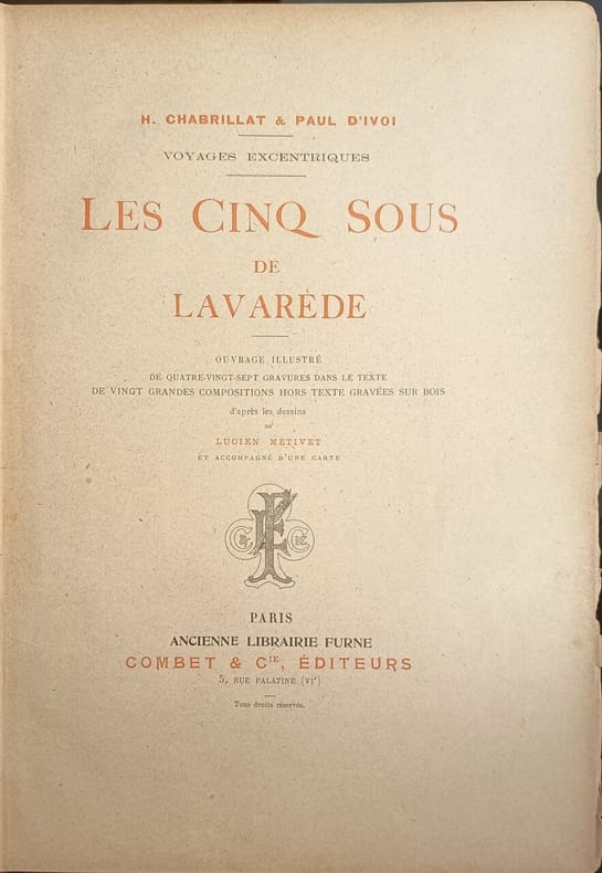 Combet & Cie Editeurs 448 pages IN4. Sans date. reliure editeur. 448 pages. Le journaliste parisien Armand Lavarède doit relever le défi de faire le tour du monde en un an avec seulement cinq sous en poche pour hériter de la fortune de son cousin. Accompagné des arbitres Sir Murlyton et sa fille Aurett il vit un voyage mouvementé plein d'astuce et de péripéties