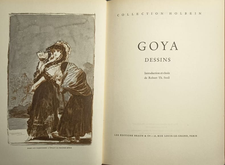 Les Éditions Braun & Cie 76 pages in8. Sans date. Reliure Editeur avec jaquette. 76 pages. Ce livre est un ouvrage consacré aux dessins de Francisco de Goya publié par les éditions Braun en 1954. Il présente une sélection de 48 dessins en pleine page accompagnée d'une introduction et d'un choix réalisés par Robert Th. Stoll. L'ouvrage sert de catalogue raisonné partiel des œuvres graphiques de l'artiste espagnol