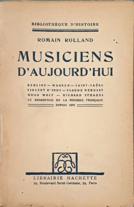 Librairie Hachette 1947 278 pages in8. 1947. broché. 278 pages. Romain Rolland réunit dans cet ouvrage des textes publiés entre 1899 et 1907 analysant des compositeurs français et étrangers du XIXe siècle comme Berlioz Wagner Saint-Saëns et Debussy. Le livre propose également une comparaison entre les musiques française et allemande ainsi qu'une étude sur le mouvement musical parisien des dernières décennies