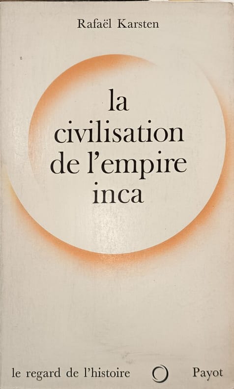 Broche bon etat sous papier cristal . Texte propre . R. Karsten. La Civilisation de l'Empire Inca : Un état totalitaire du passé. Traduction de R. Jouan. 1952.270 pages.