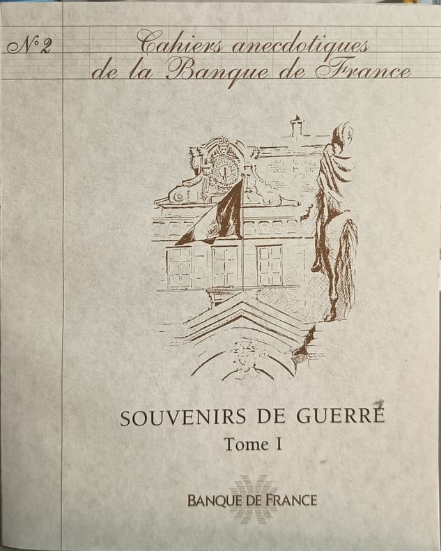 sd, Banque de France, in-8 broché de 67 pages, Cahiers anecdotiques de la Banque de France, n°2 - Souvenirs de guerre, tome I, «les cahiers de la Banque de France visent à remettre en mémoire, auprès des agents de la Banque de France en activité ou retraités, des évènements qui certes appartiennent à la petite histoire, mais qui ont peu ou prou façonné notre culture d'entreprise « | Etat : bon état général (Ref.: ref84484)