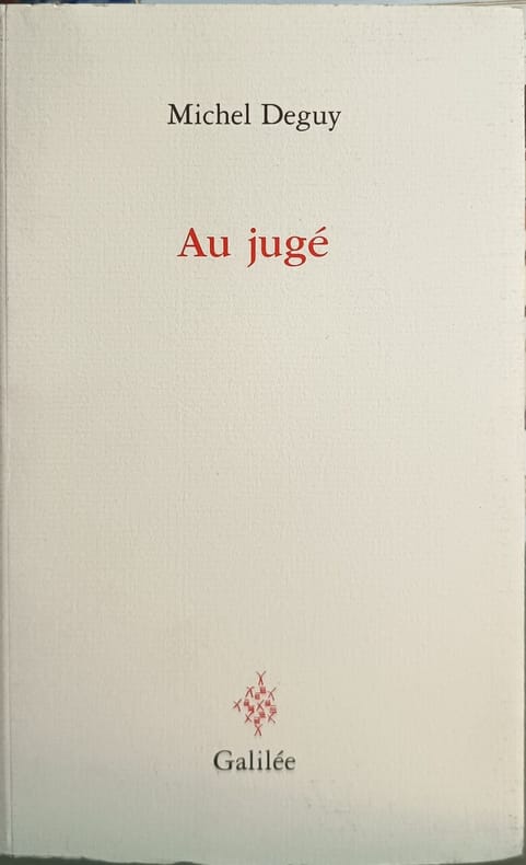 GALILEE 2004 213 pages 14 1x21 9x2 2cm. 2004. Broché couverture rempliée. 213 pages. Le livre 'Au jugé' de Michel Deguy explore la métaphore du tir d'adresse où la destination et l'habileté se fondent. Il s'agit d'un geste poétique et réflexif qui atteint sa cible non par un calcul aveugle mais par un éclair de lucidité mobilisant tout l'être – habitude corps et cœur