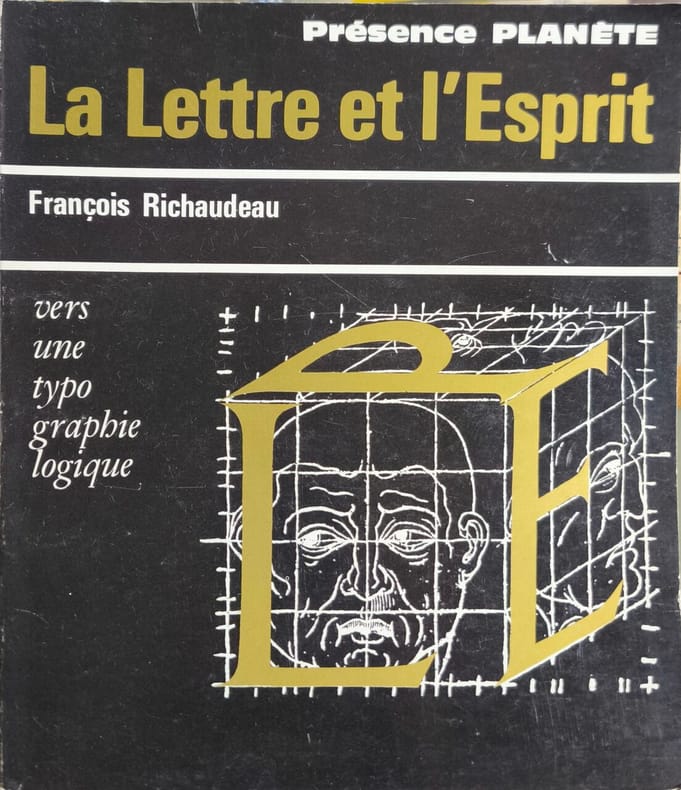 Éditions planète 1965 101 pages in8. 1965. broché. 101 pages. La Lettre et l'Esprit de François Richaudeau est un essai qui propose une réflexion novatrice sur la typographie défendant l'idée d'une typographie "foisonnante" adaptée aux exigences modernes de lecture et de communication. L'auteur ingénieur et éditeur y analyse avec un regard neuf comment la forme (la lettre) doit servir le fond (l'esprit) pour une lecture optimale