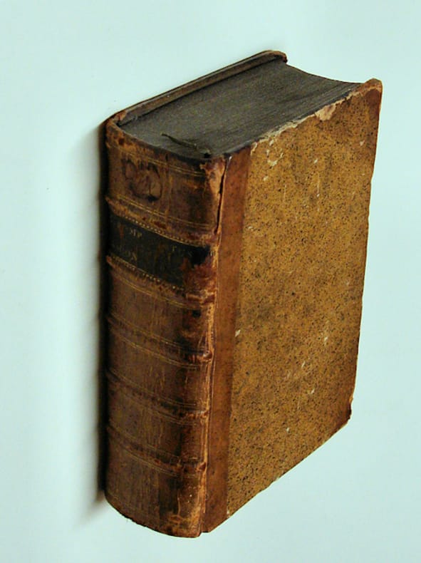 8vo. 2 volumes in 1: Ad 1: (XVI),CCCIX,(1 blank),(23 index),(1); LXXV,(1 blank),(10),CCXVI,(22 = index),(4),84 (recte 80) p. Ad 2: (XXIV),171,(1) p. H.leather. 17 cm (Ref: Ad 1: GLN-3651; Schweiger II,1135; Bernays, see p. 258/59 & 279; Ad 2: A. Cartier, Bibliographie des éditions des Tournes, no. 185; Schweiger I,18) (Details: 2 Back with 5 raised bands, and a black shield; Ad 1: 'Veritas' printer's device on the title: a woman, the naked truth, seated on a cubus, holding a radiant sun in her right hand. In her left hand she holds an opened book and a palm leaf. Her feet rest on the globe; the garland of fruit which surrounds her shows a ribbon with a motto in Greek: 'Alêtheia Pandamatôr', i.e. 'Allmighty Truth'. Ad 2: completely printed in italics; engraved printer's mark on title, a 'Ouroboros', with motto: 'quod tibi fieri non vis, alteri ne feceris', type no. 5. (See Cartier p. 40); Prism mark, type d on the verso of the last leaf, with motto 'Nescit labi virtus' (See Cartier p. 42) (Condition: Back rubbed; corners bumped; paper on covers slightly worn; a few small wormholes in the second half of the first work only; occasional faint pencil underlinings; old ownership entry at the upper margin of the title of Asconius erased; first title slightly soiled) (Note: Ad 1: Festus is a 2nd century abbreviator of a lost lexicographic work by Marcus Verrius Flaccus, dating from the first century B.C. Remains of his work survive in Festus; J.J. Scaliger, 1540-1609, produced a highly acclaimed edition in 1575. He was praised for his success at completing blank portions of the Farnese manuscript. The editor uses both Paulus Diaconus and Festus for a reconstruction of the text in strict alphabetical order, from A to V; Bernays tells us that the 216 pages with the 'Castigationes' of Scaliger are 'unverändert abgedruckt' in this edition of 1593 (Bernays p. 279). Scaliger's notes are followed by the notes of lesser gods, but nevertheless 'docti viri'. Ad 2: Asconius Pedianus, probably 3-88 A.D, produced for his sons a historical commentary on a number of the orations of the Roman politician/orator Cicero, the Verrines, pro Cornelio, contra M. Antonium & Catilinam, contra Pisonem, pro Scauro, & pro Milone. François Hotman, 1524-1590, was a French protestant jurist and author) (Provenance: Engraved bookplate of Jonkheer Henri de Brauw, depicting his coat of arms) (Collation: Festus: q - 2q8, a - v8 x8 (minus x8 blank); A - V8 X2; 2A - 2E8 2F2. Asconius: a - m8 n4 (lacking the blanks n3 and n4) (Photographs on request)
