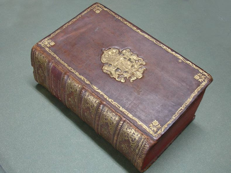 8vo. 2 volumes in 1: (II, frontispiece),(XXXII),CXXII,1262 (recte 1260),(99 index) p. Calf 21 cm (Ref: STCN ppn 241048281; Schweiger 2,1130: a long note, from which :'Sehr wichtige Ausgabe'; 'an offenbar corrupten Stellen nahm er Emendationen, fremde und eigene, auf'. 'Die Notae des Rhenanus und Burer liess er unverstümmelt unter dem Texte abdrücken und fügte ihnen seine Anmerkungen ... neue Emendationen .. hinzu'. 'Der zweite Theil enthält den vollständigen Apparat der Burmannischen Ausgabe'; Dibdin 2, 525: 'a very excellent edition'; The text is 'amended in many passages by the judgement of Ruhnkenius, and not according to the fanciful suggestions of preceeding editors'; Brunet 4,430: 'Très bonne édition'; Ebert 23482: 'Diese Ausgabe ist ein whares Muster krit. Tacts und grammat. Gelehrsamkeit, und bis jetzt die beste'. J. Bernays, 'Geschichte der klassischen Philologie, Hildesheim, 2008, p. 144: 'jetzt (ca. 1880) noch ausgezeichnet'; Spoelder p. 677, Tiel 1) (Details: Prize copy, including the manuscript prize dated 3rd july 1801 for Romboldus Brenkman Pitlo. Back gilt elaborately, and with 5 raised bands. Red morocco shield in the second compartment. Other compartments filled with gilt floral motives. Borders of the boards also ruled gilt with floral motives, and floral corner pieces. Gilt coat of arms of Tiel on both boards. Edges dyed red.The frontispiece designed by H. van der My and executed by F. v. Bleyswyk, depicting Rome, personified by an emperor, as a stronghold against chaos, under the protection of the Gods; in the middle stands the wise goddess Athena; she holds in her right hand the Palladion; Athena is the 'aquilifer' (Eagle-bearer) of Rome, for in her left hand she holds the 'Aquila', the standard of the Roman army; with a long chain she holds the destructive forces of civil war and chaos under control) (Condition: Corners slightly bumped. Head of spine very slightly damaged. All 4 ties gone) (Note: The work of the Roman historian Velleius Paterculus, ca. 19 BC - after 30 AD, is a valuable source for the reigns of the Roman emperors Augustus and Tiberius. Paterculus, who served 'under Tiberius in many of his most important campains, seems to have conceived an unbounded admiration for him and the whole imperial family, in whose men he could see nothing but sublime virtues, while the ennemies were compact of every possible vice' (H.J. Rose, 'A handbook of Latin literature, London, 1967, p. 355). Velleius' adulatory type of history was however condemned by the later historian Tacitus, who ignores him. The 'Historiae Romanae', consists of 2 books. The beginning of the first, from the founding of Rome to the battle of Pydna in 168 BC, in which the Romans defeated the Macedonian kingdom, is lost. What remains of book one ends with the fall of Carthago in 146 B.C. Book 2 is of greater importance. 'Book 2, covering the period 146 BC to AD 30, becomes more detailed as it approaches the author's own day, doubtless because, as he tells us, he projected a fuller history from the Civil War onwards.' (OCD 2nd edition p. 1111/12). His style is less polished, but we are to remember that he was more a soldier than an scholar. Velleius Paterculus was in good hands with the Dutch scholar of German origin David Ruhnken, or Ruhnkenius, 1723-1798. David Ruhnken was born in Pommern, and was sent by his parents in 1737 to the Friedrichscollegium in Königsberg, where he read Latin authors together with his friend Immanuel Kant. To finish his studies he went in 1744 to Leiden, to study Greek under Tiberius Hemsterhuis, whom he admired. He later told his biographer Wyttenbach that that he found in his teacher the combined gems of Leiden classical scholarship, Scaliger and Salmasius, in one person. Hemsterhuis wanted to create a worthy successor, and appointed him in 1757 to assist him as Reader in Greek. In 1761 Ruhnken succeeded the Latin chair vacated by Oudendorp. He became one of the leading scholars of his days. 'Die Führerstellung der Philologie erbte (...) von Hemsterhuys der Pommer David Ruhnken, der ganz zum Holländer ward und die vornehme und behäbige Würde eines Princeps criticorum zu wahren wusste. Als solchem hat ihm Fr.A. Wolf die Prolegomena gewidmet. (...) Musterhaftes Latein galt ihm soviel wie Wissenschaft. Aber als Lehrer muss er glänzend gewesen sein. (...) Alles was Ruhnken veröffentlicht hat, ist in seinen Grenzen tadellos'. (U. von Wilamowitz-Moellendorff, Geschichte der Philologie, Lpz./Bln. 1921, p. 39/40) The edition of 1779 begins with a dedication, and continues with the dedications and prefaces of previous editions, from the edition of Beatus Rhenanus of 1520 till that of Burmannus of 1719. Then follow 60 p. 'Annales Velleiani, seu vita Velleii Paterculi pro temporum ordine disposita ab H. Dodwello'. The rest of the volume is filled with the text and commentary of Ruhnkenius. Volume 2, beginning with page 500, contains the 'Variorum interpretum Notae'. (On Ruhnken: ADB 29, 615/24; and of course the dissertation of E. Hulshoff Pol, 'Studia Ruhnkeniana', Leiden 1953) (Provenance: Prize for Romboldus Brenkman Pitlo, on the occasion of his promotion to 'supremam Mediae Classis ordinem' as the best pupil of his year (primus). It is dated the 3rd of July 1801, and signed by the curators of the Gymnasium of Tiel, W. de Roo, G.J. Rink, P. Ten Bosch and J. Dijkmeester, and by 'Me Gymnasii Rectorem J. Posthuma'. A report of the prize ceremony can be found in 'Maandelijkse uittreksels, of Boekzael der geleerde waerelt', 1801, p. 353/4: 'Thiel. Na dat op den 3den July het gewoone Zomerexamen gehouden was, zyn op den eersten September eenige wakkere en veelbelovende jongelingen naar hoogere Classen bevorderd, en met aanzienlyke eerpryzen beschonken. De Rector J. Posthuma opende deze plechtigheid met eene Redenvoering 'over den staat der Letterkunde, vooral in de jongstafgelopen Eeuw in vergelyking met dezelve in de twee nog vroegere Eeuwen'. P.C. Stoltz, welke naar
