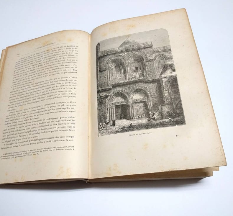 Paris, La Librairie Illustrée 1885 In-4. Reliure demi-basane bordeaux, dos lisse orné de filets et de roulettes dorées, 646 pp., nombreuses illustrations dans le texte et hors-texte, une carte en couleurs de la Palestine, en regard de la page 396. Reliure légèrement frottée, dos insolé, intérieur frais.
