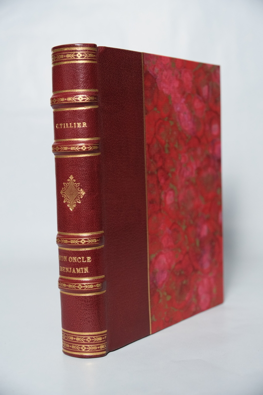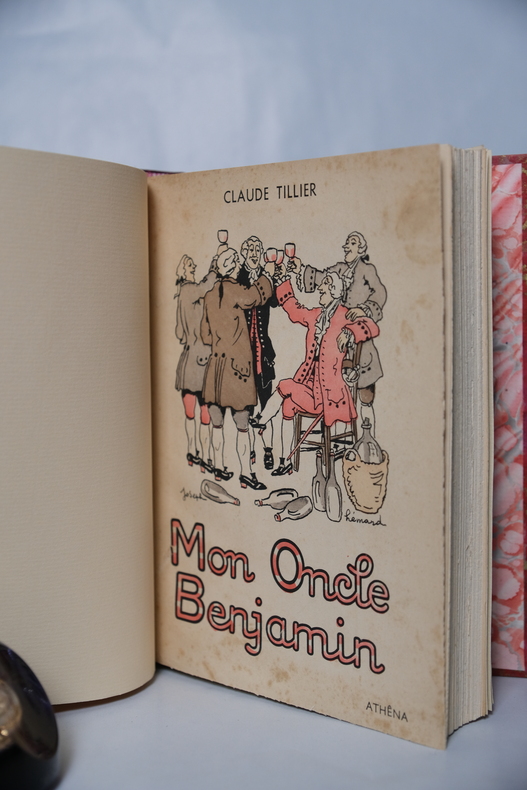 TILLIER (Claude), Mon oncle Benjamin. Paris, éditions Athêna, 1950. In-12, relié, demi-chagrin à coins, dos à 4 nerfs. Tranche de tête dorée. Tirage limité à 2500 ex. Celui-ci l’un des 500 sur Annam, n°205. Illustrations d’après les originaux de Jospeh Hémard. Très bonne condition.