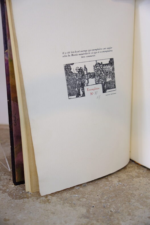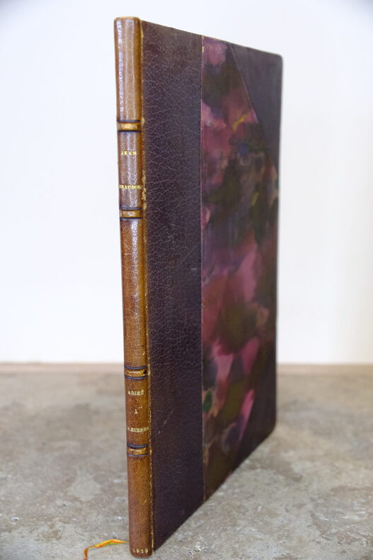 Paris, Grasset, 1919.In-4, 20 x 30 cm, reliure de l’époque demi-maroquin bordeaux à coins signée Kra - Couvertures conservés - Dos à nerfs titré or - Tête dorée. Ex-libris.Vignette frontispice sur bois de Maxime Dethomas accompagnant la justification. Édition originale numérotée sur vélin du Marais( n°83, sur les 350 + 12 hors commerce), avec monogramme autographe de l’éditeur.Très bonne conservation, épidermures sur les charnière, manque (papier) sur le plat de 4ème de couverture.