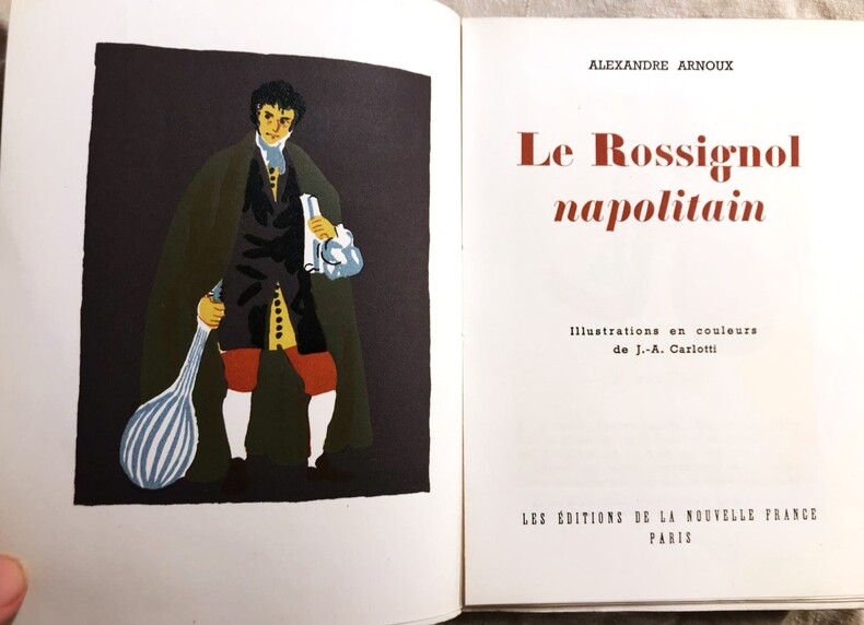 Paru aux Editions de la Nouvelle France, imprimé le 28 novembre 1945. 241p, intérieur parfaitement frais, couverture à rabat. Un exemplaire en excellent état, unique à double titre : Dédicace en page de garde, signée Carlotti Il semble que la dédicace soit pour Jean Duran, c'est donc probablement aux peintre originaire de Charlieu, Robert Jean Paul Duran, ami de Carlotti qu'elle ait été adressée. C'est le 1er des 70 exemplaires hors commerce, et le 1er de ceux qui ont été imprimés sur papier vélin de rives BFK.