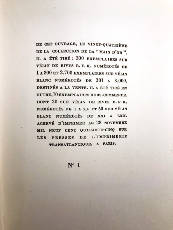 Broché bon état .Exemplaire numéroté sur vélin de Rives B.F.K. . Contenu propre . 1945.241 pages .PHOTOS SUR DEMANDE