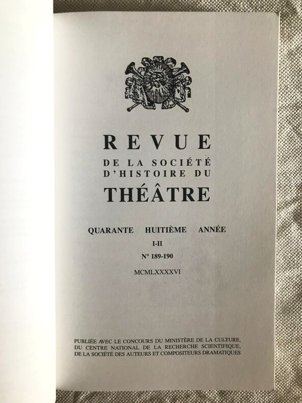 Revue d'histoire du théâtre, revue trimestrielle Janvier-Juin Quarante huitième année 1996 1-2 Numéro dédié à Jean-Louis Barrault Ouvrage en excellent état, ainsi que la jaquette.