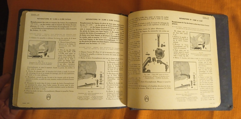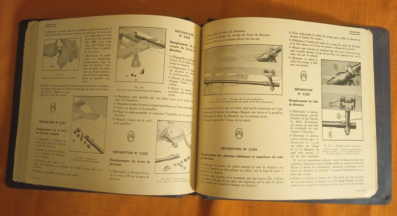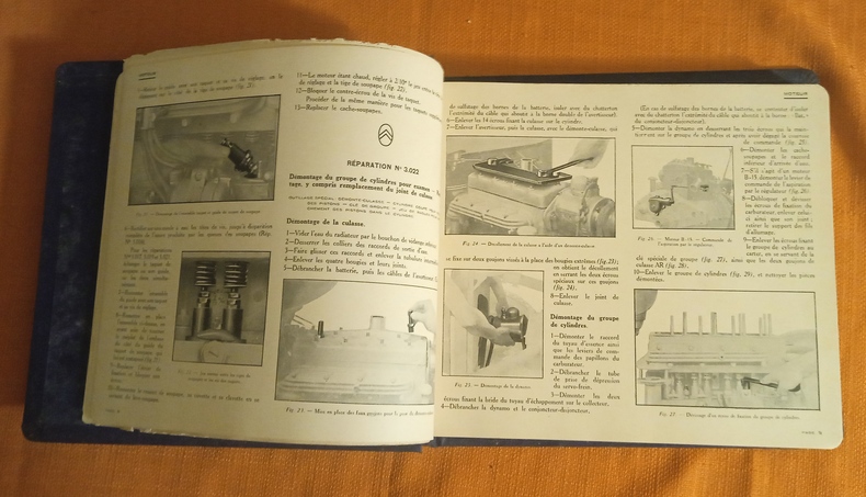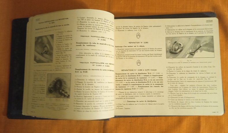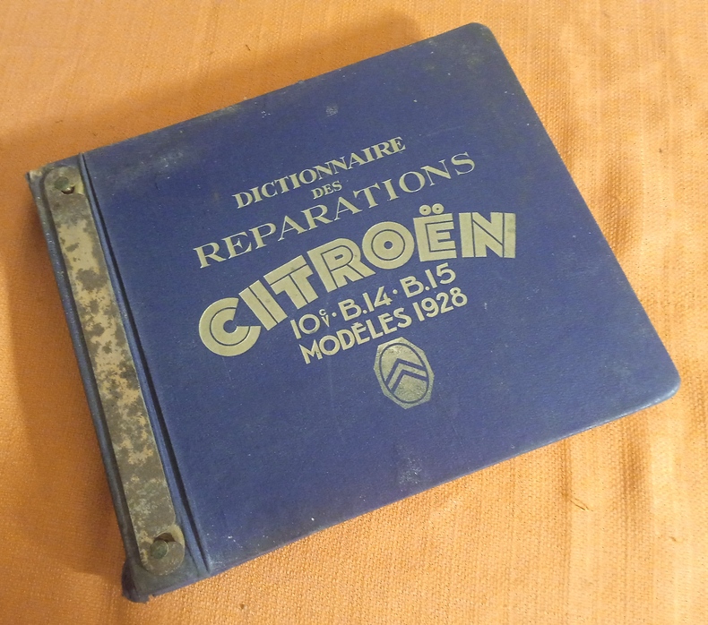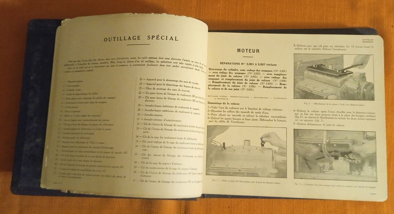 Avec 341 figures dans le texte (dessins, photographies, schémas...) Edition originale, probablement destinée aux garages concessionnaires, classeur à système boulonné, percaline, titre doré sur le premier plat, bon état, toile des mors inférieurs fendus sur 2 c, traces de frottement et léger manque à la coiffe supérieure, oxydation sur la plaque d'acier du mécanisme de fermeture, intérieur en bonne condition de fraîcheur, traces de frottement sur les bords de 3 p. dont celle de titre, coins arrondis, 172 p. Moteur , Embrayage, Changement de vitesse, Transmission, Pont arrière, Freins, Direction, Graissage, Carburateur, Commande de carburateur, Réservoir d'essence, Essieu AV, Suspension, Radiateur, Ventilateur, Silencieux, Chassis, Magnéto, Dynamo, Démarreur, Electricité.