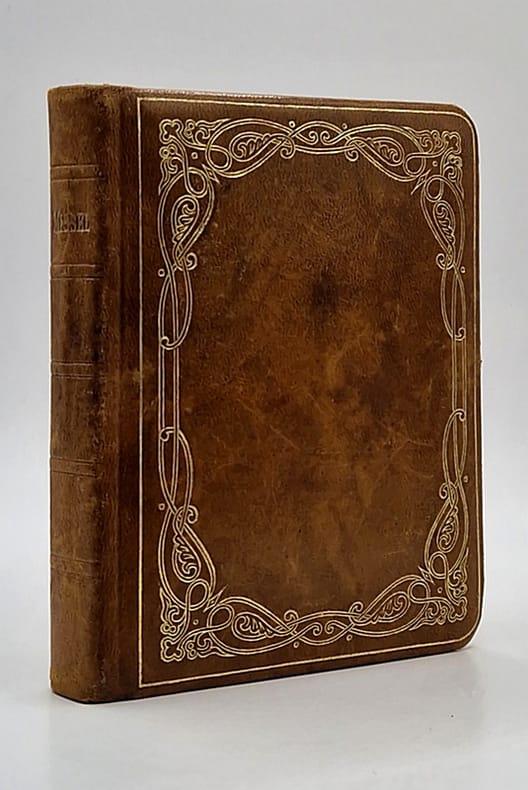 Ouvrage plein cuir, tranches dorées, plats à festons et initiales dorés, à arabesques dorées sur les gardes, entretenu à la cire 213 de la BnF, MISS-3, Alfred Mame et Fils, Editeurs, Tours, 1892