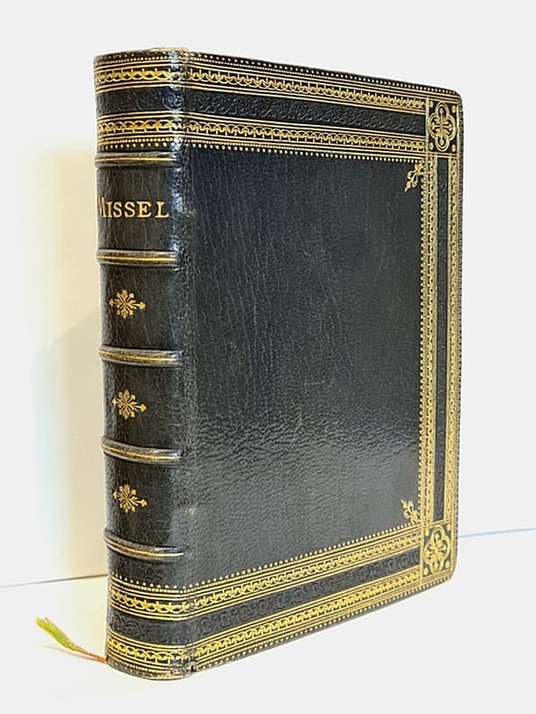 Limoges, Dalpayrat et Depelley, 1891 ; in-12 relié plein maroquin, dos à nerfs ornés, plats et dos portant un double et large encadrement de roulette dorée, tranches dorées et marbrées, frontispice et titre-frontispice, large et riche encadrement en équerre à chaque page ; 3 gravures hors texte, 504 pp. Sous coffret. Très bel exemplaire.