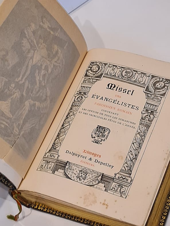 DALPAYRAT ET DEPELLAY. N° 2.. Non daté. In-18. Relié plein cuir. Bon état, Couv. légèrement passée, Dos à nerfs, Quelques rousseurs. 504 pages. Frontispice en noir et blanc avec serpente. Quelques illustrations en noir et blanc hors texte avec serpente. Ornements en noir et blanc encadrant le texte sur deux côtés. Tranches dorées. Filts, fleurons et titre dorés sur dos en cuir noir.. . . . Classification Dewey : 230-Christianisme. Théologie chrétienne
