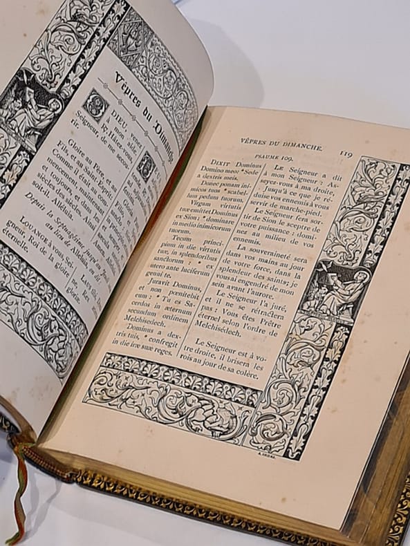 Sans date (vers 1888-1889 d'après la table du temps et des fetes mobiles. Format des pages : 10 x 14 5 cm. 504pp. Jolie reliure plein cuir avec usures d'usages. Quelques rousseurs principalement sur les serpentes. En stock. Vendeur PRO Français. N'hésitez pas me contacter pour toutes questions ou photos supplémentaires. Expédition rapide et soignée sous enveloppe cartonnée ou à bulles