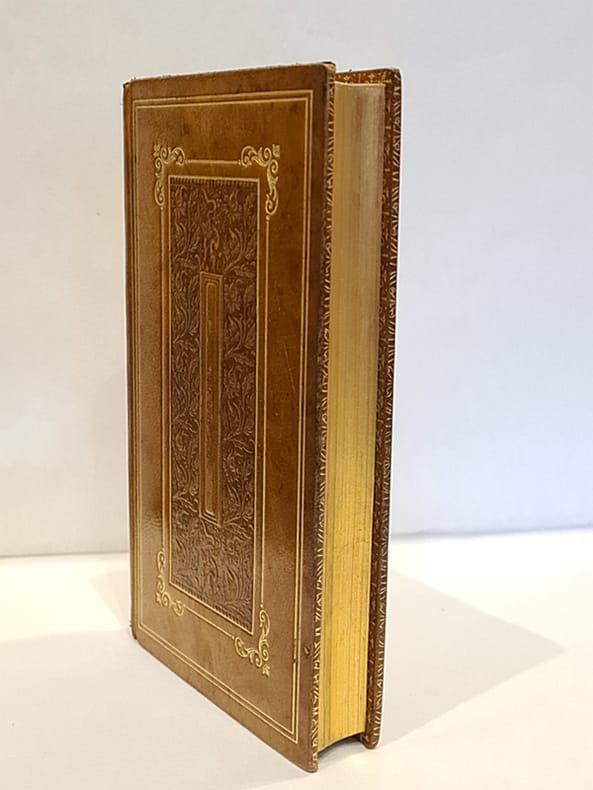 Turnhout, Brepols, 1912 ; in-12 relié pleine basane havane (bords légèrement émoussés, petite épidermure sur le plat supérieur), dos plats, cadres dorés au plat supérieur et motifs en dorure à froid sur les deux plats, tranches dorées, gardes encadrées d'ornements dorés, frontispice et titre-frontispice, large cadre à chaque page, 380 pp.