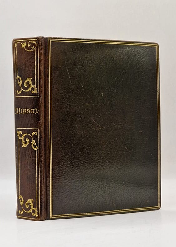 Bel ouvrage plein cuir entretenu à la cire 213 dela BnF, avec tranches, initiales et festons dorés sur le premier plat, qui vient dans son coffret rigide ; MISS-35, J; Depelley & Cie, Limoges 1903