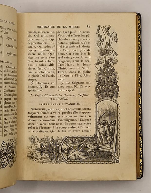 DALPAYRAT & DEPELLEY. NON DATE. In-16. Relié. Etat d'usage, Couv. convenable, Dos à nerfs, Intérieur frais. 504 pages - nombreuses illustrations en noir et blanc hors texte sous serpente - frontispice en noir et blanc - dos à 5 nerfs - tranches dorées / rouge - ornements dorés / violet sur les contre-plats - ornements dorés en bordure des contre-plats - nombreuses lettrines en noir et blanc - nombreuses illustrations en noir et blanc en bordure du texte - texte en 2 colonnes - titre doré au dos.. . . . Classification Dewey : 264-Le culte