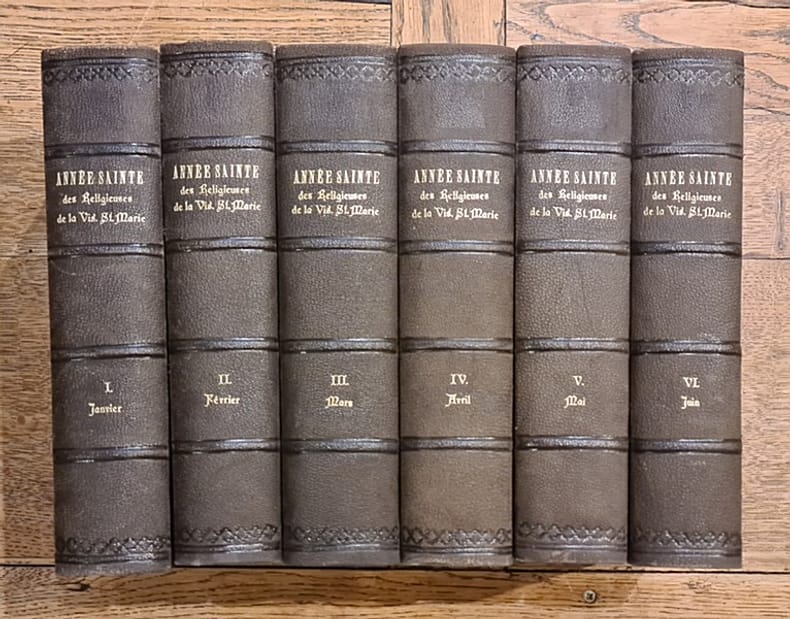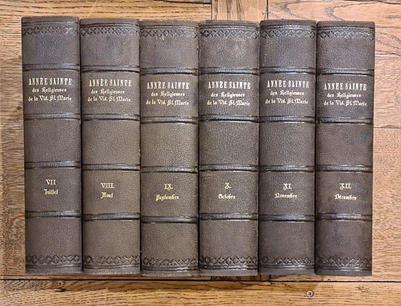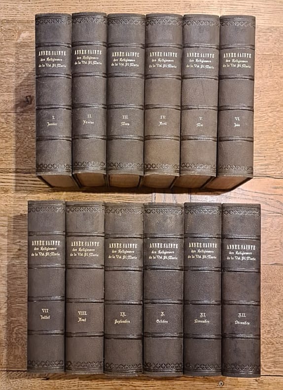 Annecy, Charles Burdet 1867-1871 12 tomes (complet, un tome par mois, de janvier à décembre), 25cm., reliures cart.avec dos en cuir (titres et faux-nerfs dorés au dos, qqs.petits manques aux dos, plats décorés en motif de 'tree calf'), tranches rouges, ensemble +/- 9000pp., peu de rousseurs, bon ensemble, R84195