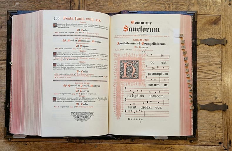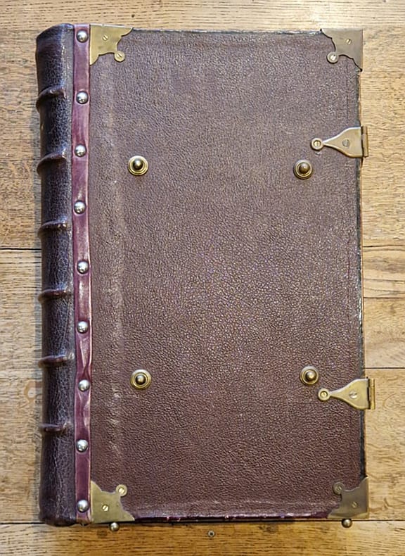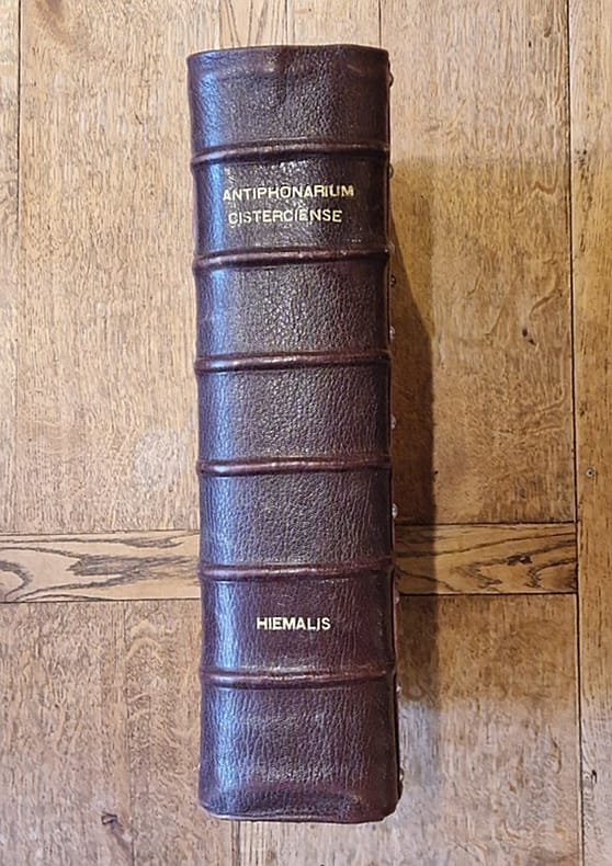 Westmalle, Typographia Ordinis Cisterciensium Strictioris Observantiae, 1947 ; grand et très fort in-4° relié (hauteur : 53 cm, largeur : 38 cm, épaisseur : 14 cm, poids : 14 kg) plein cuir, cornières, cabochons et double fermoir métalliques ; tranches rouges, 759-294* pp.