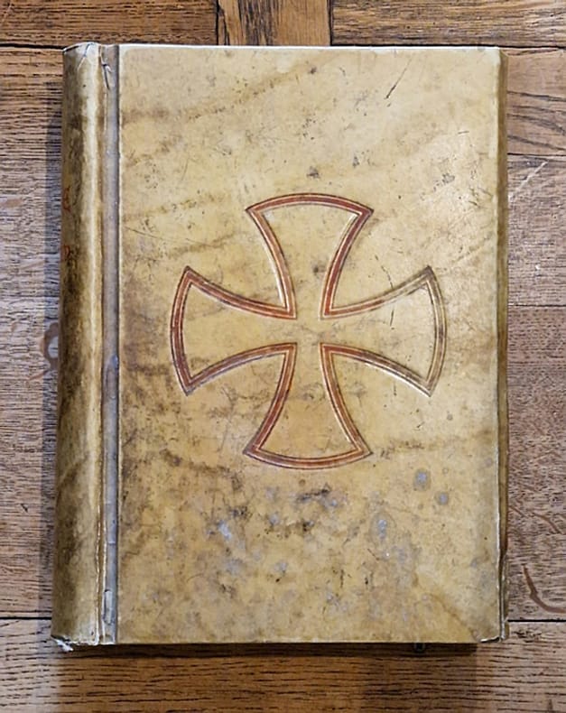 Mechliniae, H. Dessain, 1939 ; fort in-4° relié plein vélin moderne (salissures), dos plat, croix rouges au centre des plats, frontispice en couleurs, nombreuses illustrations, texte noir et rouge sur deux colonnes, culs-de-lampe, XLVI-712-(199)-[44]-170-[32] pp.