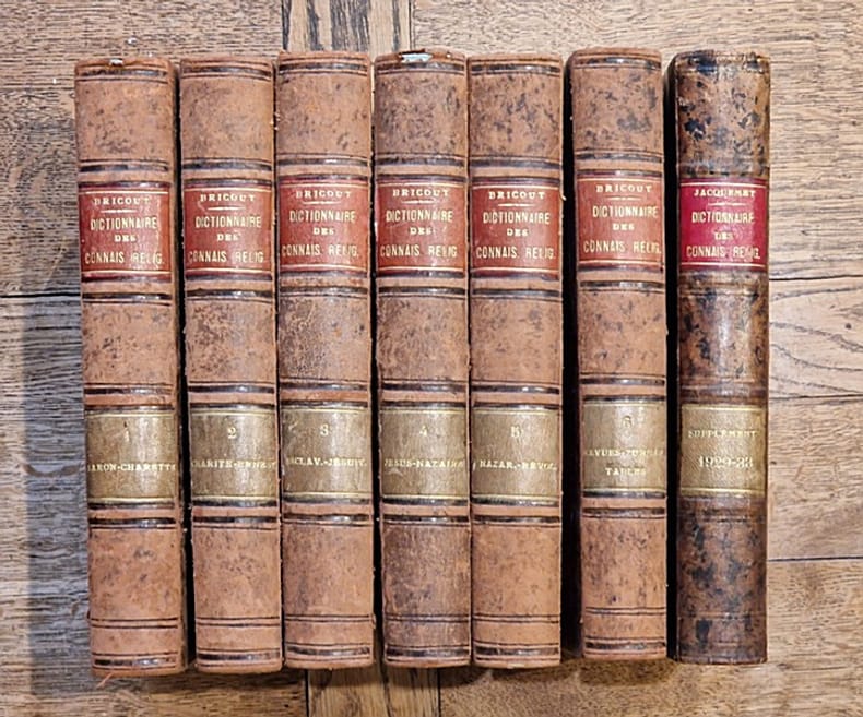 Paris, Letouzey et Ané, 1925-1933 ; 7 vol. in-8° reliés demi basane havane, pièce de titre rouge, dos à nerfs plats, texte sur deux colonnes. Bien complet du volumes de Suppléments.