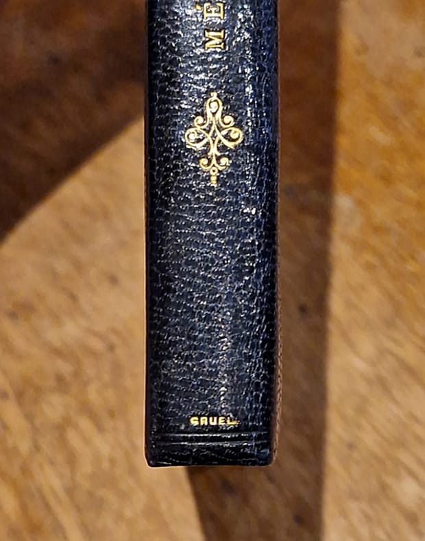Paris, Gruel et Engelmann, 1883 ; petit in-8° relié plein maroquin bleu marine à rabats, dos plat signé en pied « Gruel », monogramme doré au plat supérieur, tranches dorées, frontispice et grande et belle vignette de l'éditeur, bandeaux, culs-de-lampe et lettrines, 304 pp. Bel exemplaire.