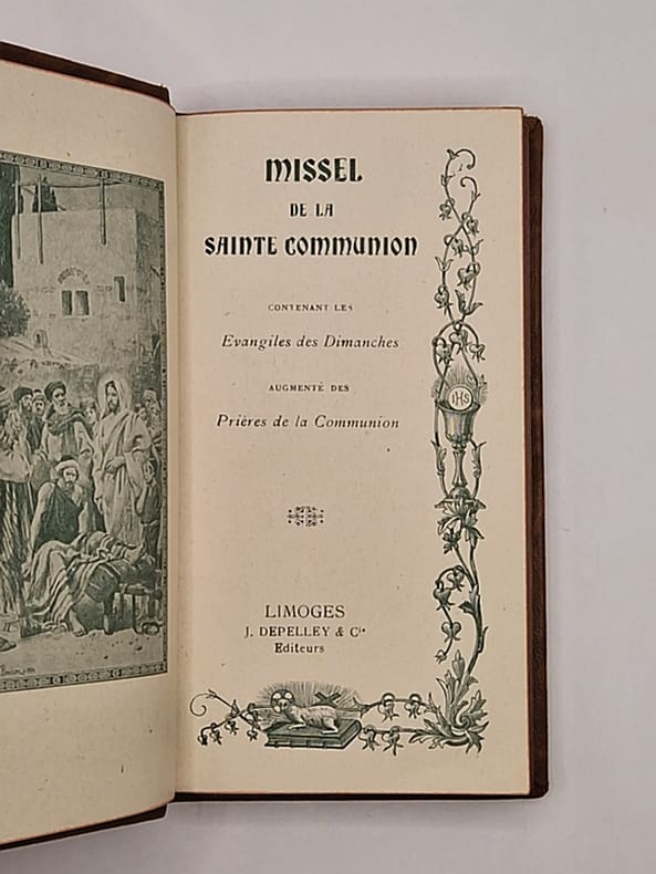 Limoges, Depelley, 1931 ; in-12 relié pleine basane fauve, dos plat, décor estampé au premier plat, tranches dorées (or passé), petite vignette en haut de chaque page, avec encadrement gris-vert en équerre, 192 pp.