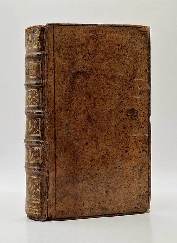 Paris, Mérigot le jeune, 1788 ; in-12 relié plein veau de l'époque (coins émoussés, un mors fendu sur deux centimètres), dos à nerfs richement orné (coiffes absentes), tranches rouges, tampons, ex-dono manuscrit ancien en garde, bandeaux, VIII-561-(7) pp. On doit la traduction de cet ouvrage au lieutenant de Croiseuil de Vertevoye.