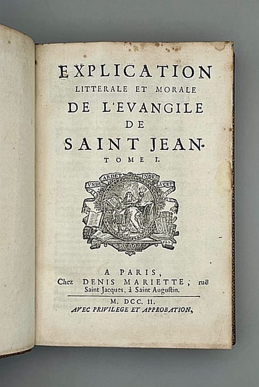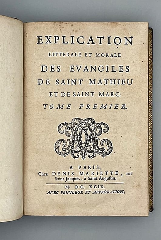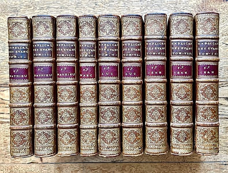 Paris, Denis Mariette, 1699, 1701 et 1702 [éditions originales]. Neuf volumes in-8° reliés plein veau blond glacé (reliure de l'époque), dos à nerfs richement ornés portant titre et tomaison, tranches dorées et marbrées (petit accroc sur un mors des tomes I et IX), vignettes de titre et bandeaux gravés. Bel ensemble, que l'on trouve rarement complet. Jean Polinier (1646-1727) fut abbé de l'abbaye Sainte-Geneviève de Paris et supérieur général des Chanoines réguliers de la Congrégation de France.