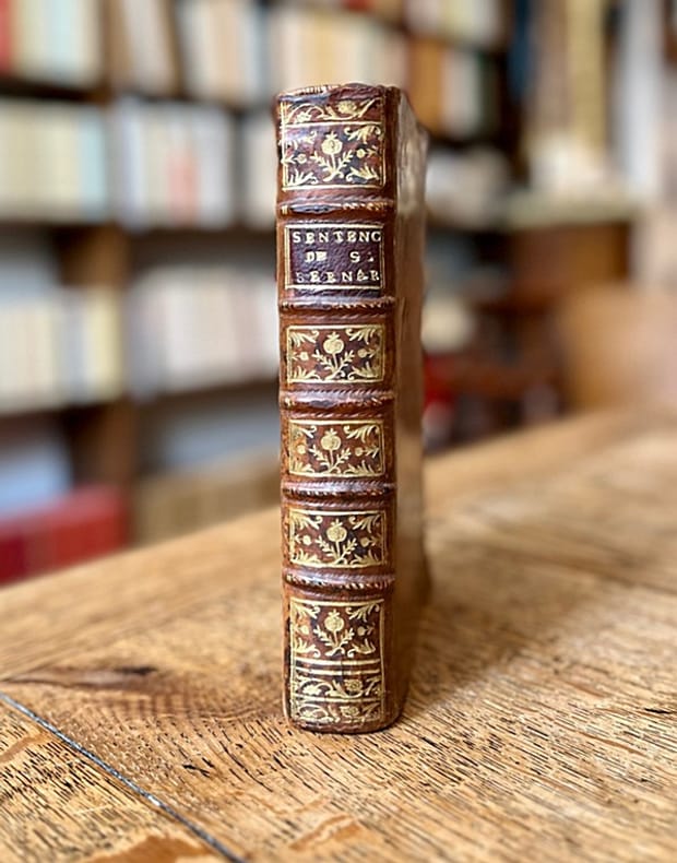 Paris, Jean Villette Fils, 1734 ; in-12 relié pleine basane marbrée (reliure de l'époque), dos à nerfs richement orné, tranches rouges (coins émoussés et petit accroc en coiffe supérieure), 586 -(20) pp.