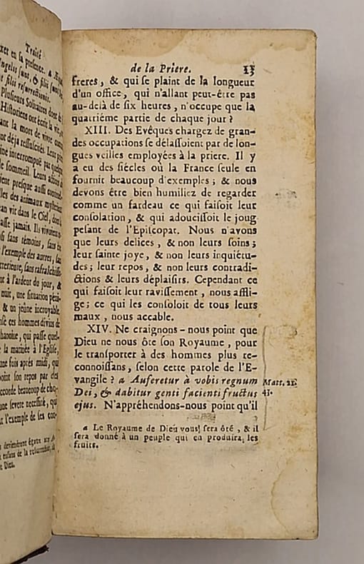 La Haye, Adrian Moetiens, 1607 ; in-12 relié plein veau de l'époque (trois coins émoussés), dos à nerfs richement orné (coiffe supérieure en partie absence et coiffe inférieur accidentée, sans fragilité), pièce de titre rouge, petite mouillure claire au centre de la marge supérieure des 190 premières pages, (4)-311-256-(2) pp. Jacques Joseph Duguet (1649-1733) était un moraliste français. Voltaire le considérait comme « l'une des meilleures plumes du parti janséniste » (Le Siècle de Louis XIV).