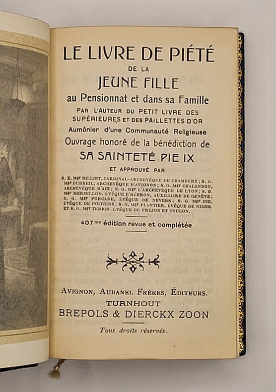 Avignon/Turnhout, Aubanel Frères/Brepols et Dierckx Zoon, 1907 ; petit in-8° relié plein maroquin bleu de France, dos lisse, tranches dorées, roulette intérieure et gardes de moire bleue, frontispice, 847 pp.