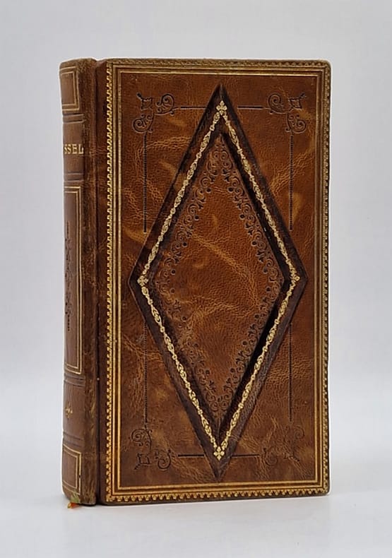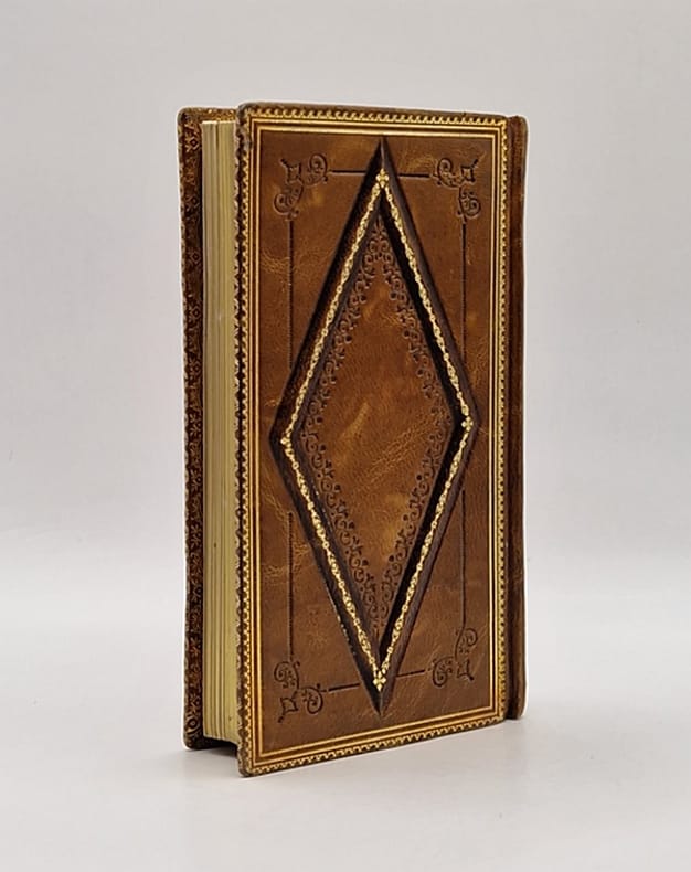 Ouvrage plein cuir, lignes dorées sur plats, tranches dorées, festons dorés sur gardes, entretenu à la cire 213 de la BnF, MISS-17, P, Mellottée, Editeur, Limoges,