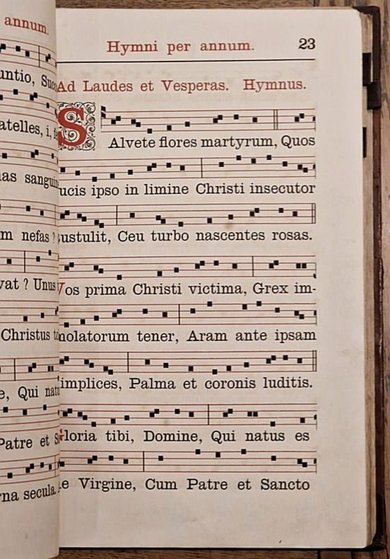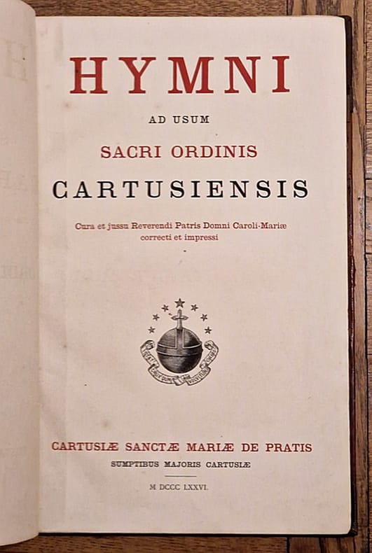 Typis Cartusiae Sancta Maria de Pratis, 1884 ; deux in-folio reliés demi-chagrin grenat à larges coins, dos à cinq nerfs richement orné (dos légèrement frotté par endroits), culs-de-lampe, texte sur deux colonnes avec, en marge, quelques indications à usage liturgique, 749 et 600 pp. Complet.