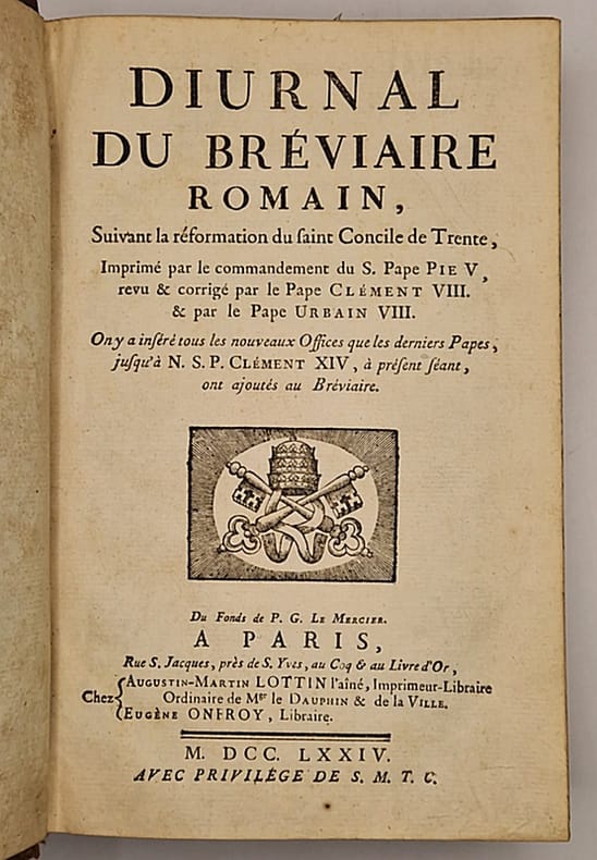P., A. M. Lottin l'Aîné et Eug. Onfroy, 1774 ; in-8. LXXII-512pp.-CXXVII-1f.-16pp. Basane noire, dos à nerfs, titre doré, tranches rouges ; fermoirs en laiton. Traces de mouillures marginales pâles sur plusieurs feuillets. petites salissures sur le titre. un titre frotispice gravé, n'appartenant pas à cette édition, a été rajouité en regard de la page de titre. ( A Paris, chez Lottin, 1778, pour la seconde partie).