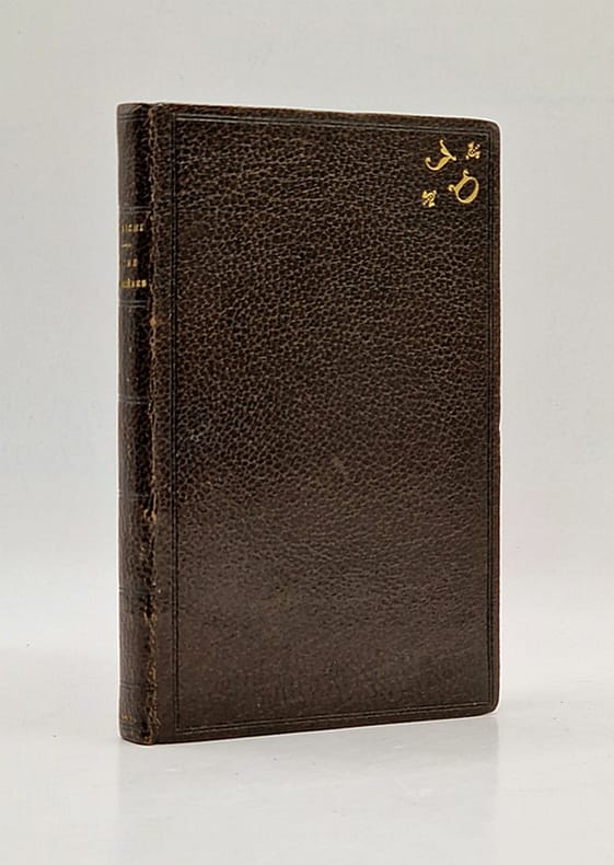 Paris, Gruel et Engelmann, 1882 ; in-16 relié plein maroquin brun, dos lisse signé en pied « Gruel », initiales dorées « J. D. » en angle sur le premier plat, tranches dorées, papier de garde aux initiales de Gruel et Engelmann, frontispice gravé, toutes pages encadrées de rouge, 277-(2) pp. Accompagné d'un coffret cartonné et toilé brun, récemment conçu sur mesure, et de son emboîtage d'origine.