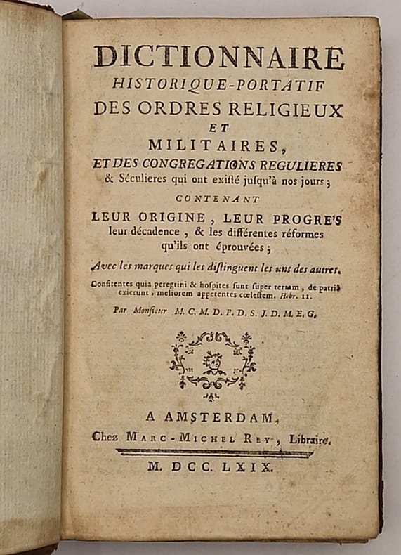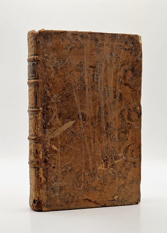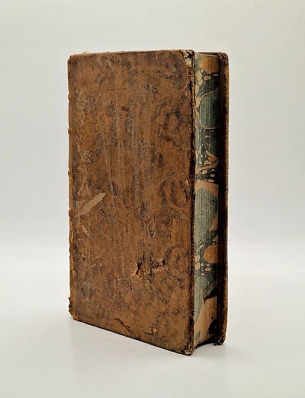 Amsterdam, Marc-Michel Rey, 1769 ; petit in-8° relié pleine basane havane de l'époque (très frottée, coins émoussés, épidermures, petite brèche en coiffe supérieure, nonobstant bonne solidité), tranches marbrées, infime manque de papier dans la marge de quelques pages (loin du texte), XVII-(90)-291 pp.