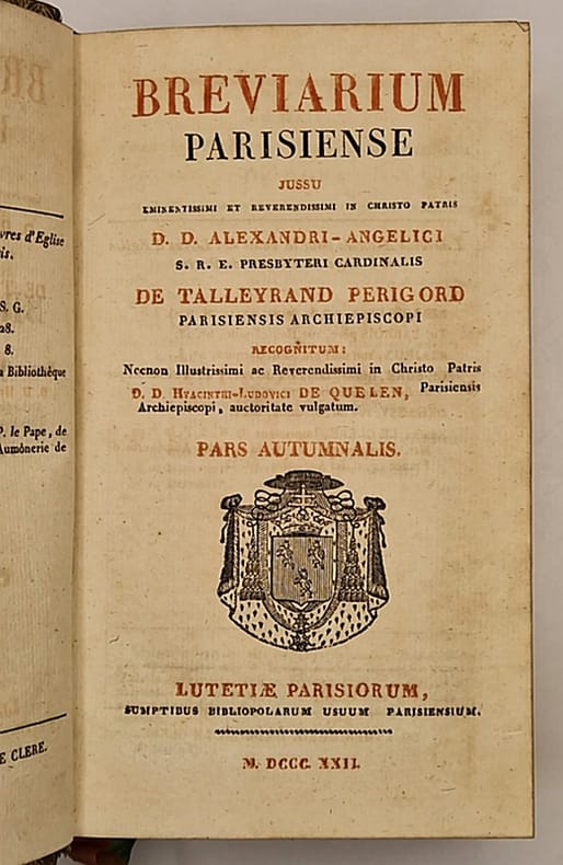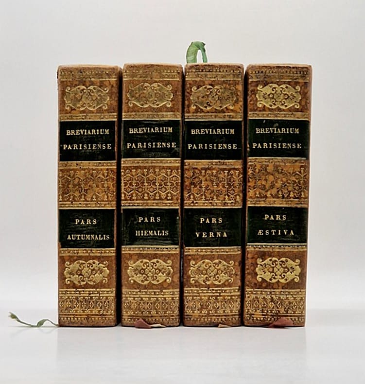 Paris, Sumptibus Bibliopolarum usuum Parisiensium [imprimerie d'Adrien Le Clere], 1822 ; 4 vol. in-12 reliés pleine basane marbrée, dos plats richement ornés, pièces de titre de basane verte, encadrement de roulette dorée sur chaque plat, tranches dorées, quelques rares rousseurs éparses, texte sur deux colonnes. Bel exemplaire.