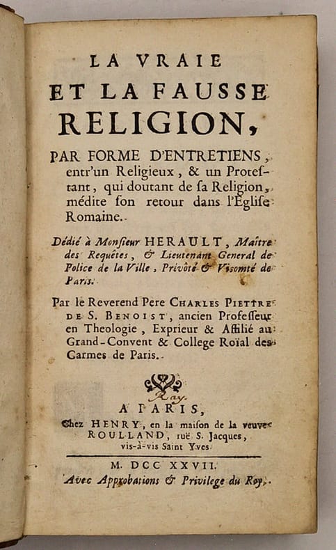Paris, Henry/Veuve Roulland, 1727 ; in-12 relié plein veau de l'époque, dos à nerfs richement orn (un mors fendu sur pratiquement toute sa longueuer, coiffes absentes, trois coins usés, nonobstant reliure solide), bandeaux et lettrines, XVIII-519 pp. Ouvrage peu courant.