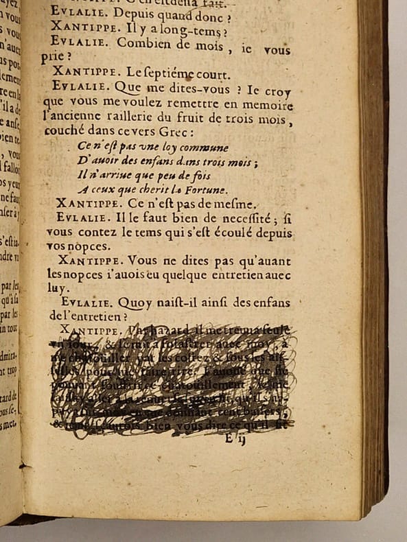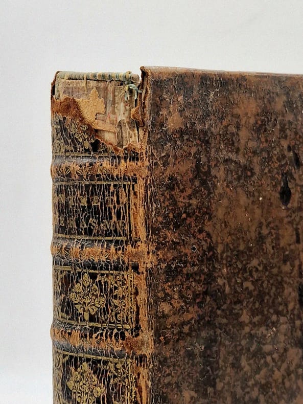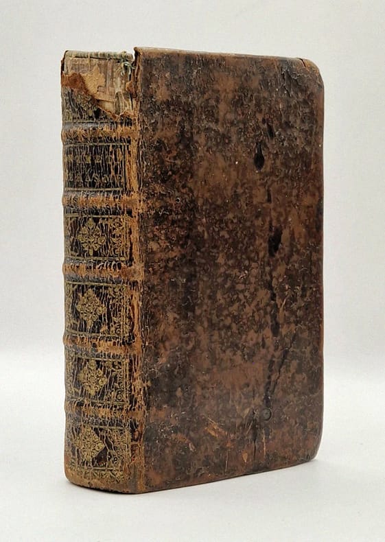 Paris, Thomas Iolly [Thomas Jolly], 1662 ; trois parties reliées en un in-12 plein veau de l'époque, dos à nerfs richement orné (dorure passée, important manque de cuir en tête, nonobstant bonne reliure solide), beaux portrait gravé en taille-douce, un paragraphe furieusement caviardé (partie 2, p. 101), travail de ver dans la marge inférieure (partie 2, pp. 110-150 – infime atteinte du texte), bandeaux, (22)-140-(16)-168-(8)-173-(1) pp.